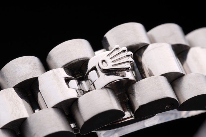Armband: geschliffener und polierter Edelstahl Armband mit Rolex Gravur klappbare in Faltschließe die Rolex logo