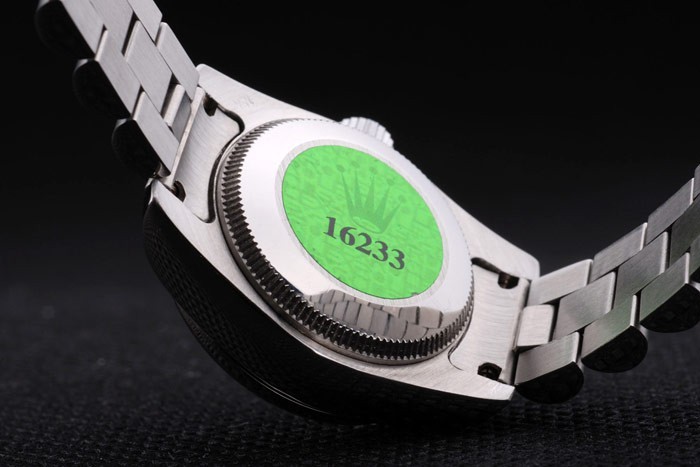 Rückseite: Edelstahl Push-Gehäuseboden mit grünen Rolex-Logo stampGeschlecht: Frauen