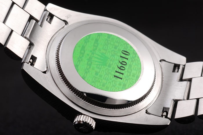 Rückseite: Edelstahl Push-Gehäuseboden mit grünen Rolex-Logo stampGeschlecht: Männer